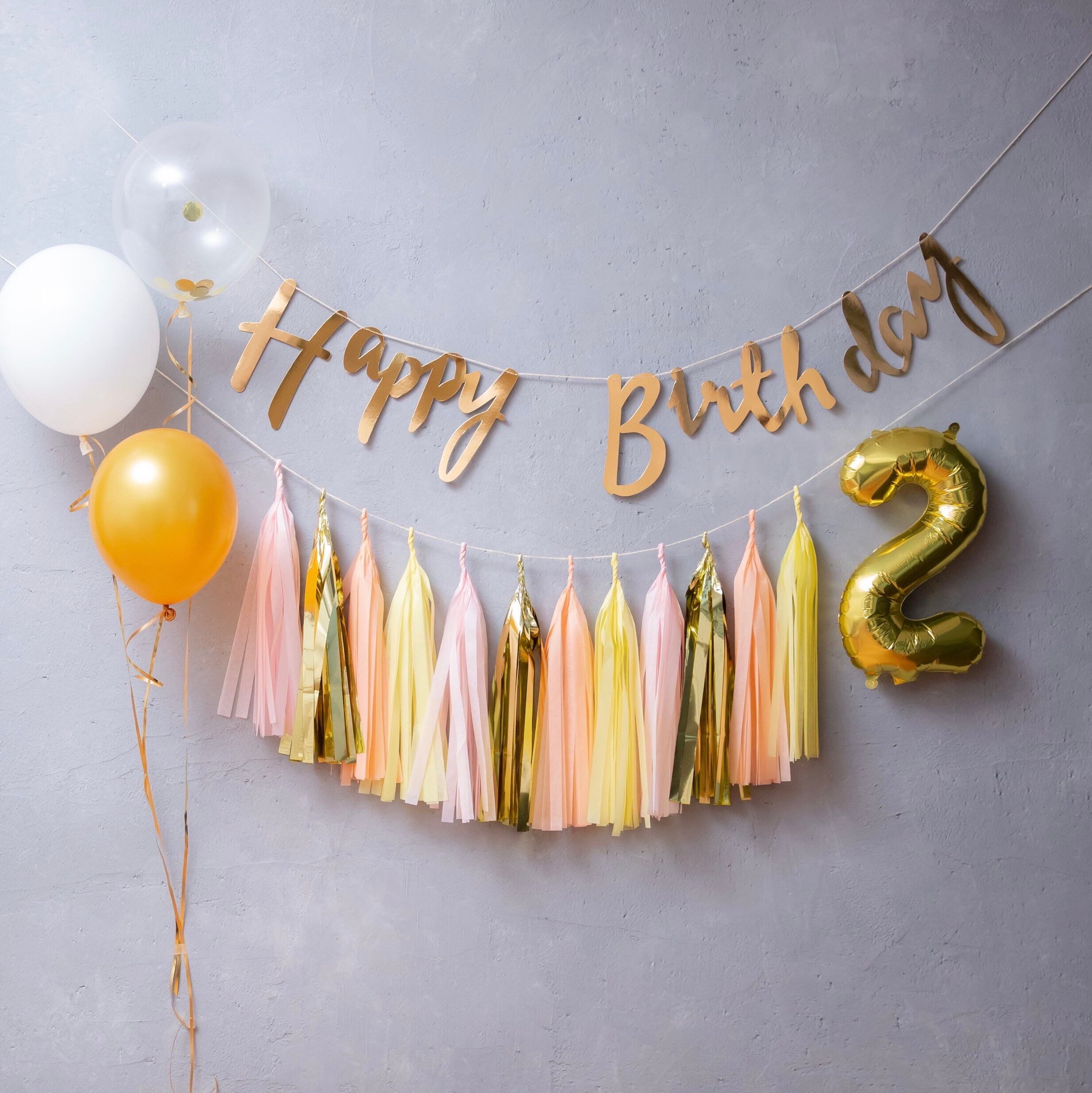 好みでタッセルカラーをセレクト!HappyFaceオリジナルタッセルガーランドでスタイリングしたお誕生日セット(往復送料込み) 写真のアイテムをセットでシェア(レンタル)致します。 【内容】 ・HappyBirthdayバナー ・DIYタッセルガーランド(カラー選択可) ・フォイルバルーン(ナンバーバルーン) ・コンフェッティバルーン1個&ゴムバルーン2個 ・装飾用マスキングテープ ※バルーン、タッセルガーランドはプレゼント致します(ヘリウムガスは入っておりません) ※タッセルガーランドはご自身で仕上げて頂くDIYキットになります ※在庫状況により、一部変更になる場合がございます 【ご利用方法】 (1)お届け日とご返却日をご選択下さい ※お届け日とご返却日含め最長で10日間のレンタルが可能です (2)フォイルバルーンをご選択下さい (3)ご希望のタッセルカラーをご選択下さい ※写真使用カラーをご希望の場合は ★商品写真使用カラーをお選び下さい (4)ご指定の返却日までに同封の返却封筒で梱包の上ポストに投函 ※当方へのご連絡がなく、ご指定のご返却期限を過ぎた場合は延長料金(500円/日)を頂戴致します。