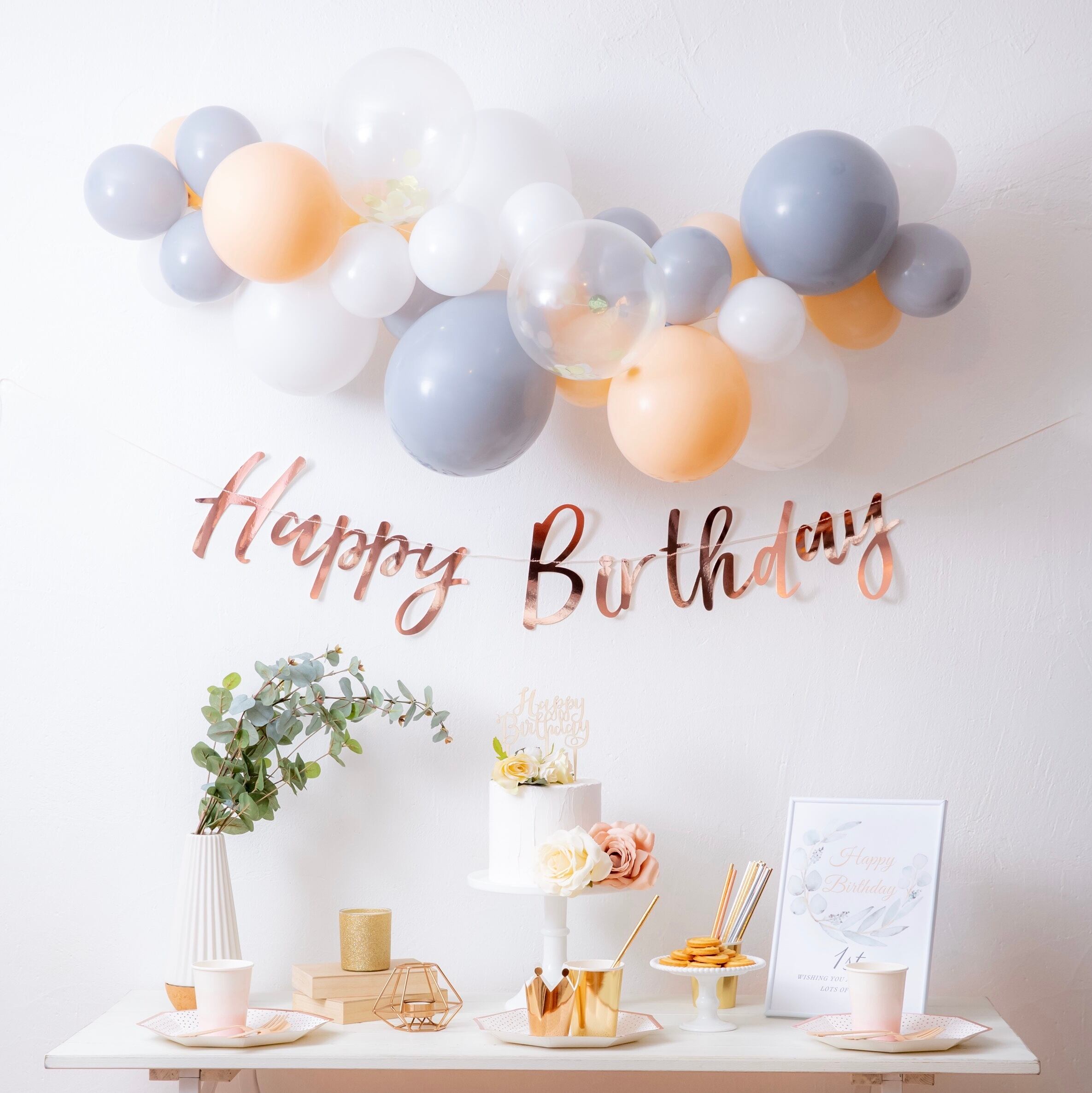 トレンドのバルーンガーランドがセットになった大人気の誕生日セット!(往復送料込み) 写真のアイテムをセットでシェア(レンタル)致します。 【内容】 ・DIYバルーンガーランド(カラー選択可) ・Happy Birthdayバナー ・フェイクグリーン3本 ・クレイケーキ(フェイク) ・Happy Birthdayケーキトッパー(セットのフェイクケーキのみに使用可能) ・Birthdayメッセージボード ・クラウンハット1個 ・装飾用マスキングテープ ・バルーン用空気入れ ※バルーンガーランドはご自身で仕上げて頂くDIYキットになります(使用後バルーンはプレゼント致します) ※ケーキトッパーは生ケーキにはご使用出来ませんのでご注意下さい ※在庫状況により、一部変更になる場合がございます 【ご利用方法】 (1)お届け日とご返却日をご選択下さい ※お届け日とご返却日含め最長で10日間のレンタルが可能です (2)メッセージボードの数字をお選びご選択下さい (3)ご希望のバルーンカラーを2色ご記入下さい (ホワイトとコンフェッテイクリアのバルーンはデフォルトでセットになります) ※ご記入がない場合、写真使用カラー(ブラッシュ、グレー)での発送となりますのでご了承下さい (4) ご指定の返却日にドライバーが送り状持参でお引取りに伺います ※ご返却の時間帯指定はできかねますのでご了承ください ※当方へのご連絡がなく、ご指定のご返却期限を過ぎた場合は延長料金(500円/日)を頂戴致します