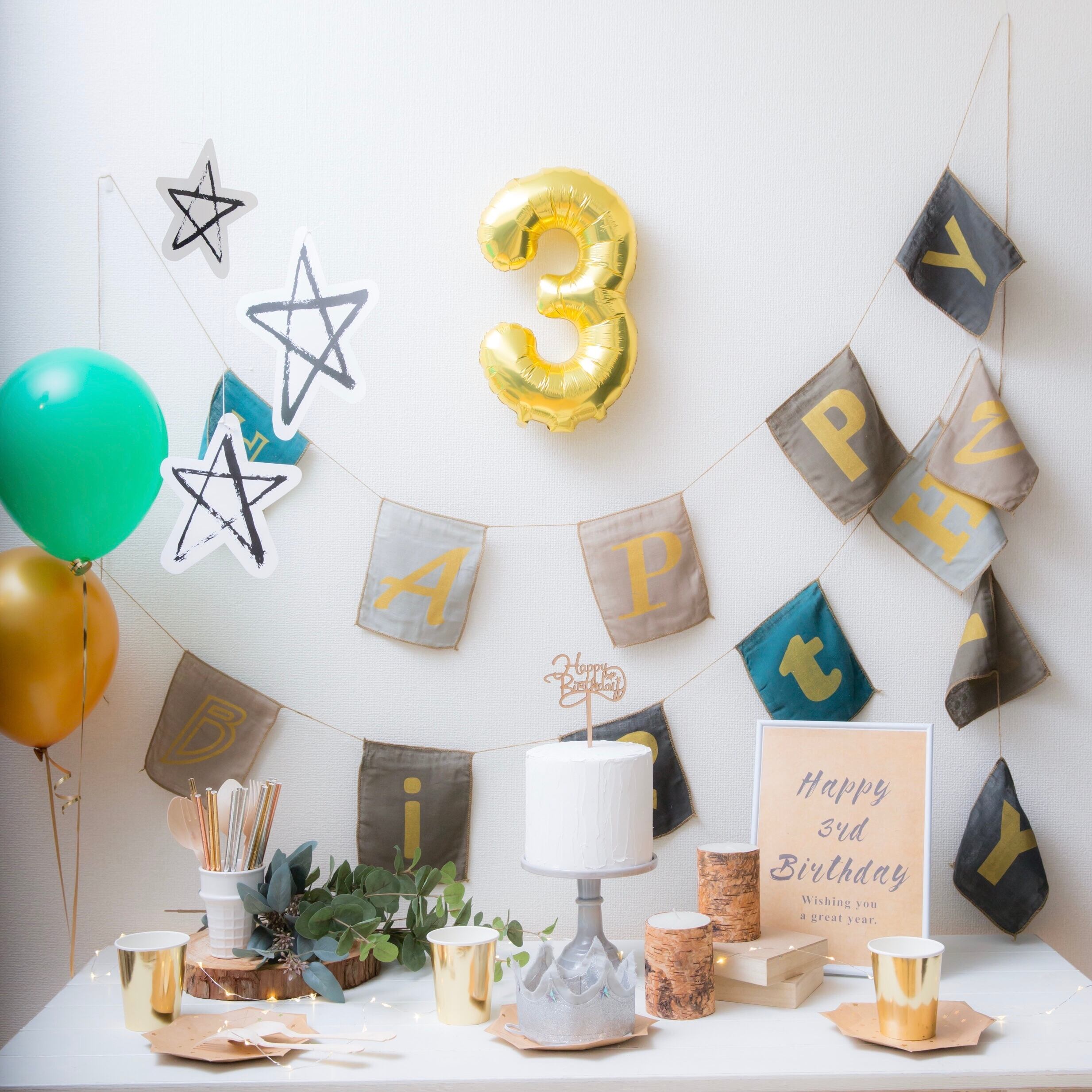 HappyFaceオススメ!ナチュラルな雰囲気がすてきなスタンダードボックスセット(往復送料込み) 写真のアイテムをセットでシェア(レンタル)致します。 【内容】 ・フォイルバルーン(ナンバーセレクト) ・スターモビール ・HAPPYBIRTHDAYファブリックバナー ・クレイケーキ(フェイク) ・Happy Birthdayケーキトッパー(セットのフェイクケーキのみに使用可能) ・Birthdayメッセージボード ・フェイクグリーン3本 ・クラウンハット1個 ・ゴムバルーン2個 ・装飾用マスキングテープ ・バルーン用空気入れ ※バルーンはプレゼント致します(ヘリウムガスは入っておりません) ※ケーキトッパーは生ケーキにはご使用出来ませんのでご注意下さい ※在庫状況により、一部変更になる場合がございます 【ご利用方法】 (1)お届け日とご返却日をご選択下さい ※お届け日とご返却日含め最長で10日間のレンタルが可能です (2)フォイルバルーンの数字をご選択下さい ※メッセージボードの数字はこちらに合わせます (3)ご指定の返却日にドライバーが送り状持参でお引取りに伺います ※ご返却の時間帯指定はできかねますのでご了承ください ※当方へのご連絡がなく、ご指定のご返却期限を過ぎた場合は延長料金(500円/日)を頂戴致します