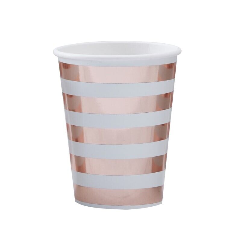 Ginger Ray ローズゴールのボーダー柄がオシャレなペーパーカップセットです サイズ:縦9.5×横7.5cm 内容:8個セット 素材:紙製